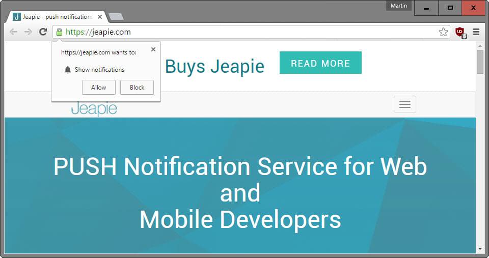 Trước hết, làm thế nào để các thông báo PUSH hoạt động? Chúng tôi chắc rằng bạn đã thấy một trong những cửa sổ cảnh báo nhỏ đó, xin phép bạn gửi thông báo cho bạn. Nó có thể trông giống như trên ảnh chụp màn hình bên dưới